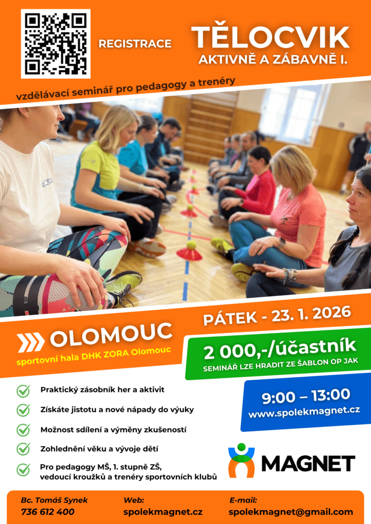 Hledáte nové nápady, jak udělat pohyb zábavný, hravý a přitom smysluplný? Přijďte na praktický seminář TĚLOCVIK ZÁBAVNĚ A AKTIVNĚ I. – tentokrát v OLOMOUCI!